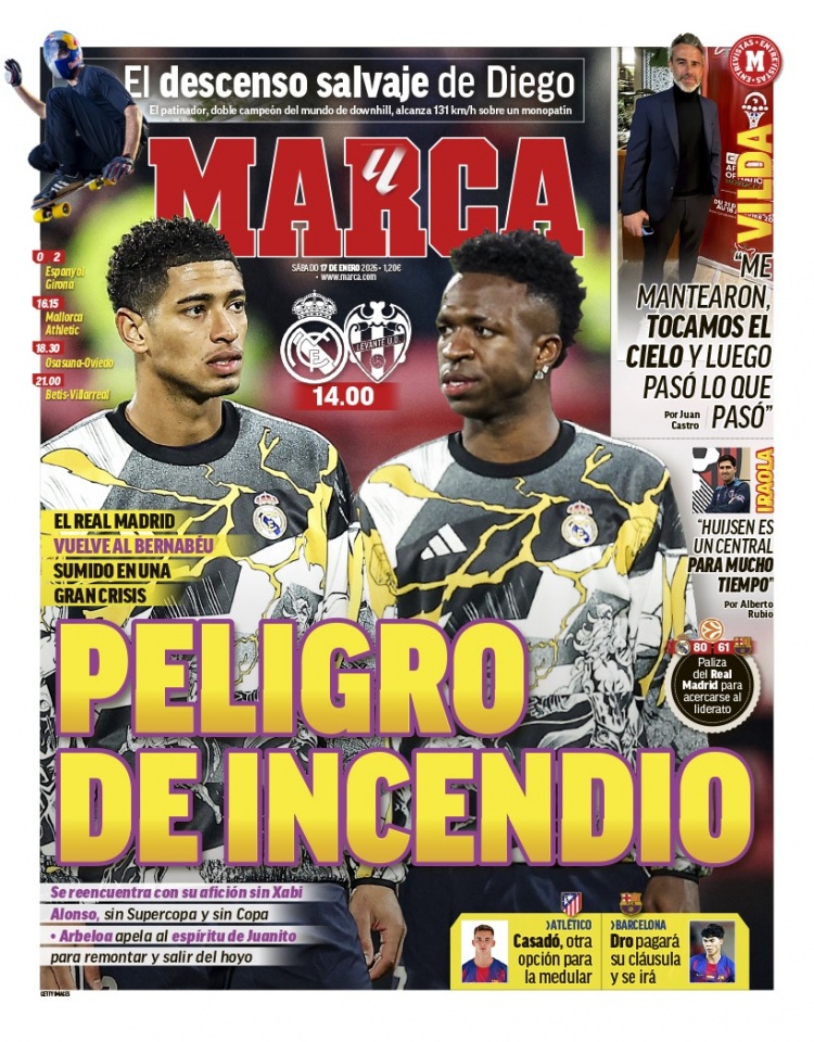 1月17日讯 西班牙媒体《马卡报》更新社媒动态,晒出今日的头版内容。